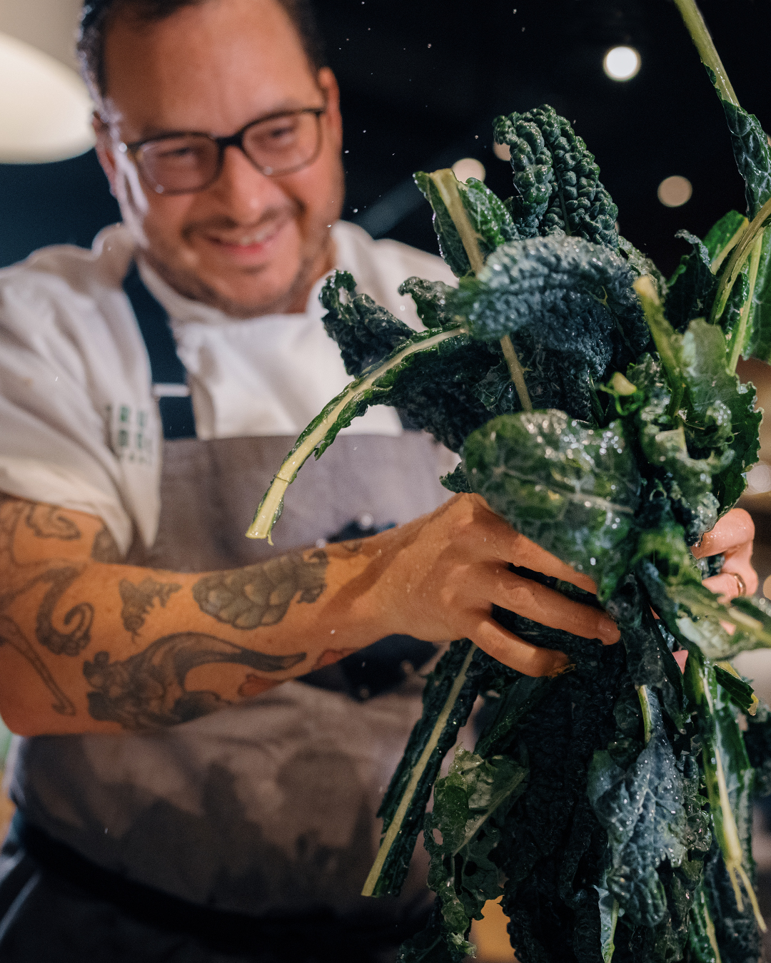 Enjoy the open kitchen expo counter, community tables, and outdoor rooftop. You might want to start by sipping on a cocktail in the hotel courtyard.