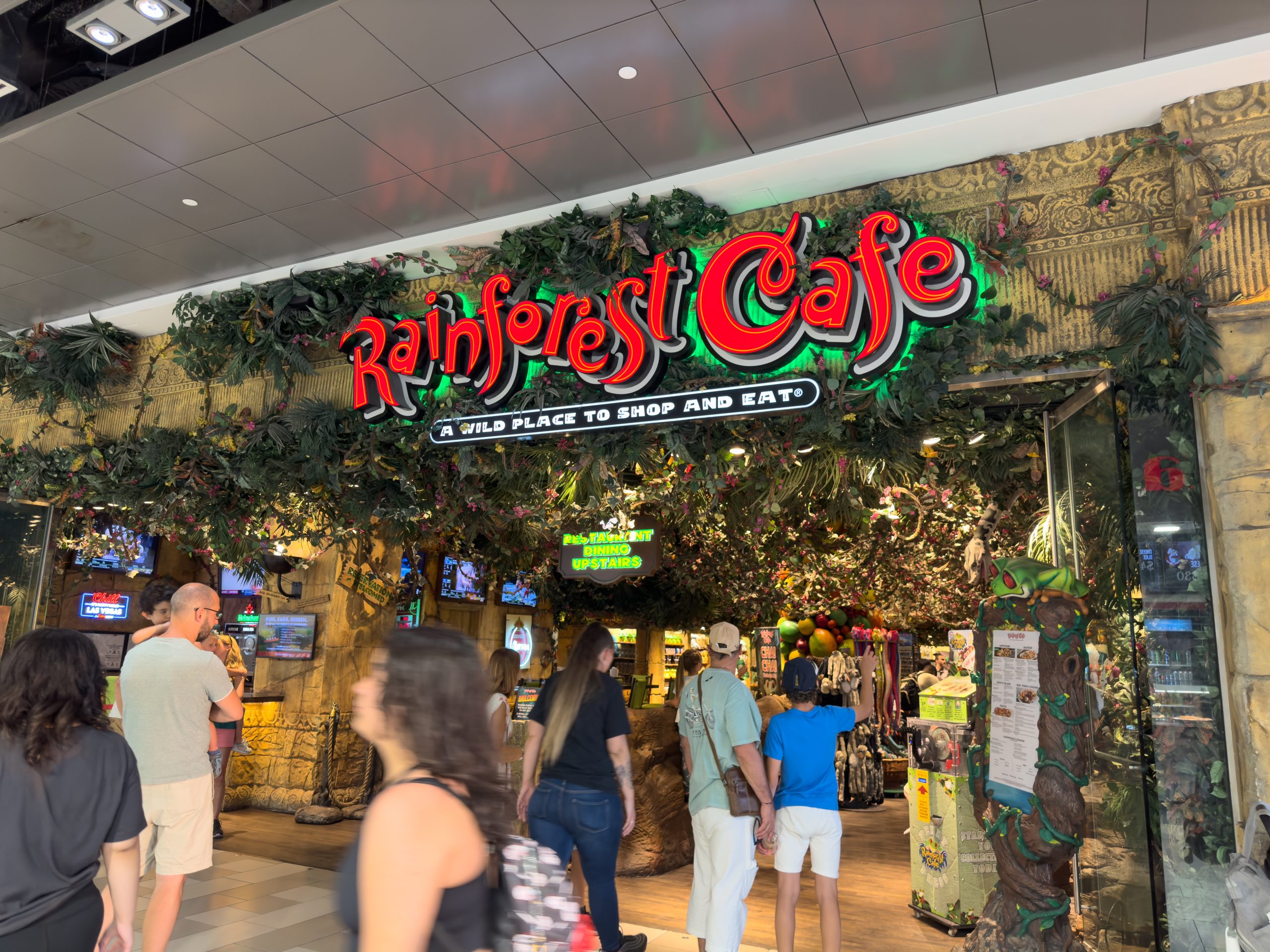 If you want a fun spot for kids (or just feel like being a kid), this place still works. There are animatronic animals, rain sounds, and even a thunderstorm every 20 minutes. The food? Basic, but the burgers and nachos hit the spot.