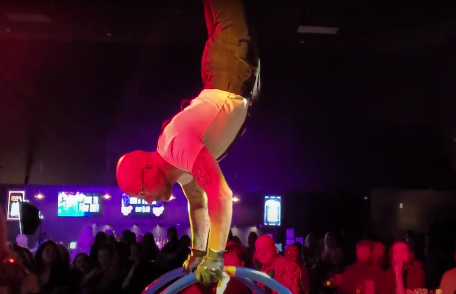 This one really surprised me. While I was expecting a cheap knock-off of bigger shows, RED VELVET BURLESQUE packs a lot of wallop into sixty minutes. Like the production that precedes it, RED VELVET BURLESQUE has outlets across the nation. The reason? They, along with Hunk-O-Mania, are presented by controversial managing partner Jeffrey Wachman II. The NOTORIETY version of R.V.B. has been given an injection of Sin City DNA courtesy of Jennifer Romas. The iconic entertainer behind SEXXY and the recently launched EXXCITE elevates RED VELVET BURLESQUE to new heights...quite literally. [video width="1920" height="1080" mp4="https://vegas411-images.s3.eu-north-1.amazonaws.com/wp-content/uploads/2023/10/10015324/20231014_202245.mp4"][/video] Athletic performers in EXXCITE are somewhat limited by the low ceilings of DUOMO's smallish theater. At NOTORIETY, they're free to swoop, spin, and soar. Although there is an overlap of cast members between the two shows, production numbers are totally unique. [video width="1920" height="1080" mp4="https://vegas411-images.s3.eu-north-1.amazonaws.com/wp-content/uploads/2023/10/10015326/20231014_203924.mp4"][/video] RED VELVET BURLESQUE lacks the powerful vocals of EXXCITE's breakout star Gabie Lopez. In her place, DIVA ROYALE's Ms. Sexton handles the hosting chores. R.V.B. also adds physical comedy and acrobatics by way of "Mateo" (Mathieu Bolillo). The athlete, formerly of KA by Cirque du Soleil, delivers two gravity-defying numbers right in the center of the audience. Read his Vegas Unfiltered profile here.