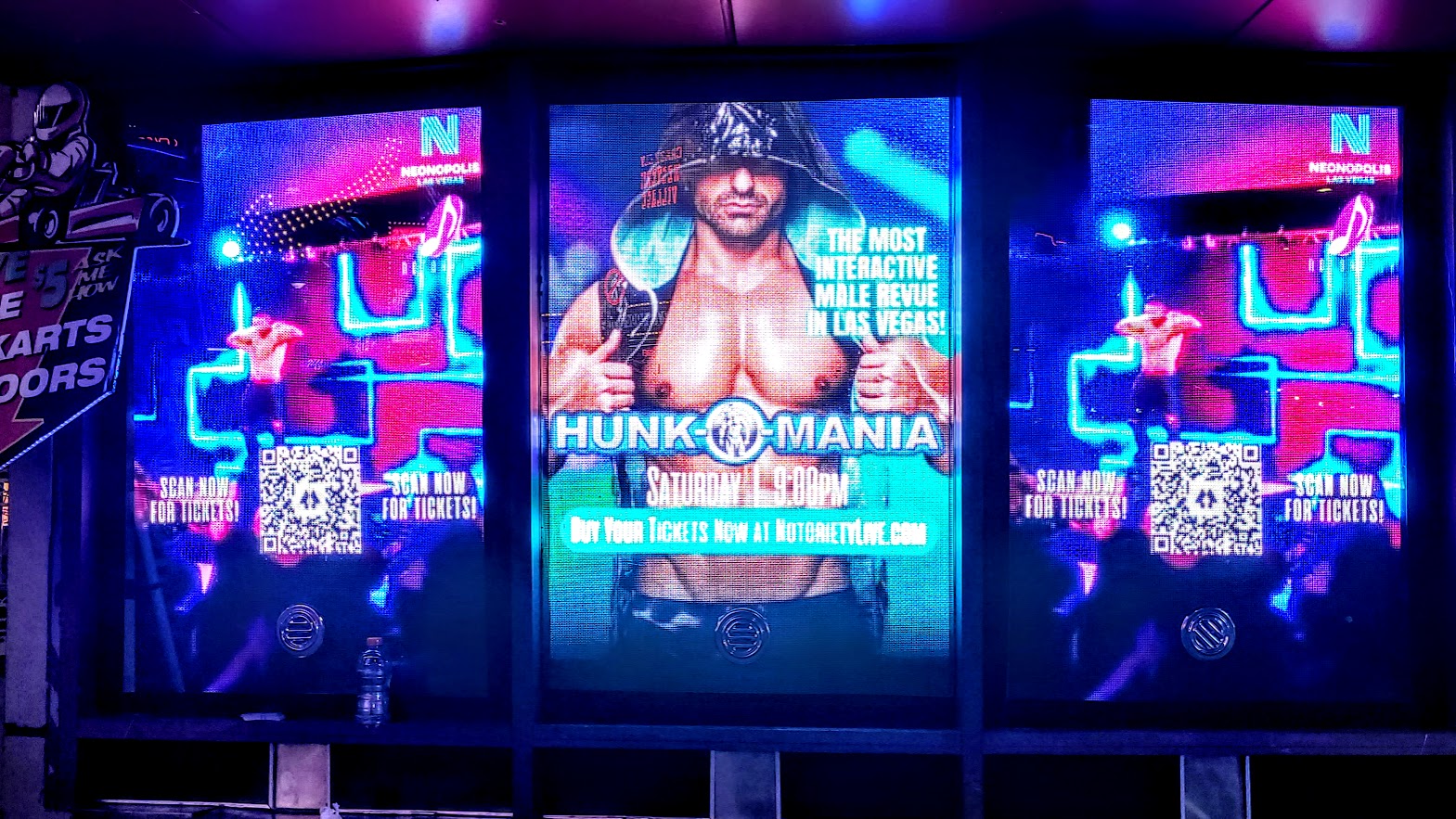 It's somewhat amusing that you'll see more women onstage at HUNK-O-MANIA than men. The smallish cast has no real standouts, and their dancing talents are minimal at best. Combine that with unimaginative costumes and some surprisingly unimpressive physiques, and HUNK-O-MANIA becomes quite the disappointment. So head across the hall to Chase Brown's VEGAS COUNTRY for your downtown man-meat needs.