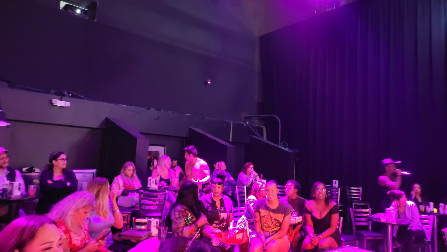 If there's one saving grace to HUNK-O-MANIA, it's that you can see it for absolutely free. Ticketholders from the previous two shows are invited to stick around when seats are available. NOTORIETY owner Ken Henderson tells me that he's perfectly fine with the unusual practice: "It's their showroom for the night. They can do whatever they want. As long as customers continue to buy drinks, it's okay with me".