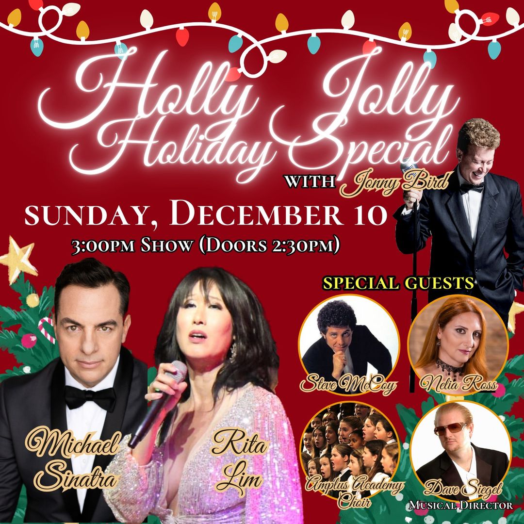 Crooner Jonny Bird hosts a Sunday afternoon gala with many familiar and highly respected performers. Michael Sinatra (FRANKLY FRANK) and elegant Rita Lim join Nelia Ross, Steve McCoy, and the Amplus Academy Choir. The musical director is David Siegel. HOLLY JOLLY HOLIDAY SPECIAL will be held on Sunday, December 10th at 3 pm. The location is Sun City MacDonald Ranch at 2020 W. Horizon Ridge Pkwy in Henderson. Tickets cost $30 and can be ordered by phoning 702-755-3799.