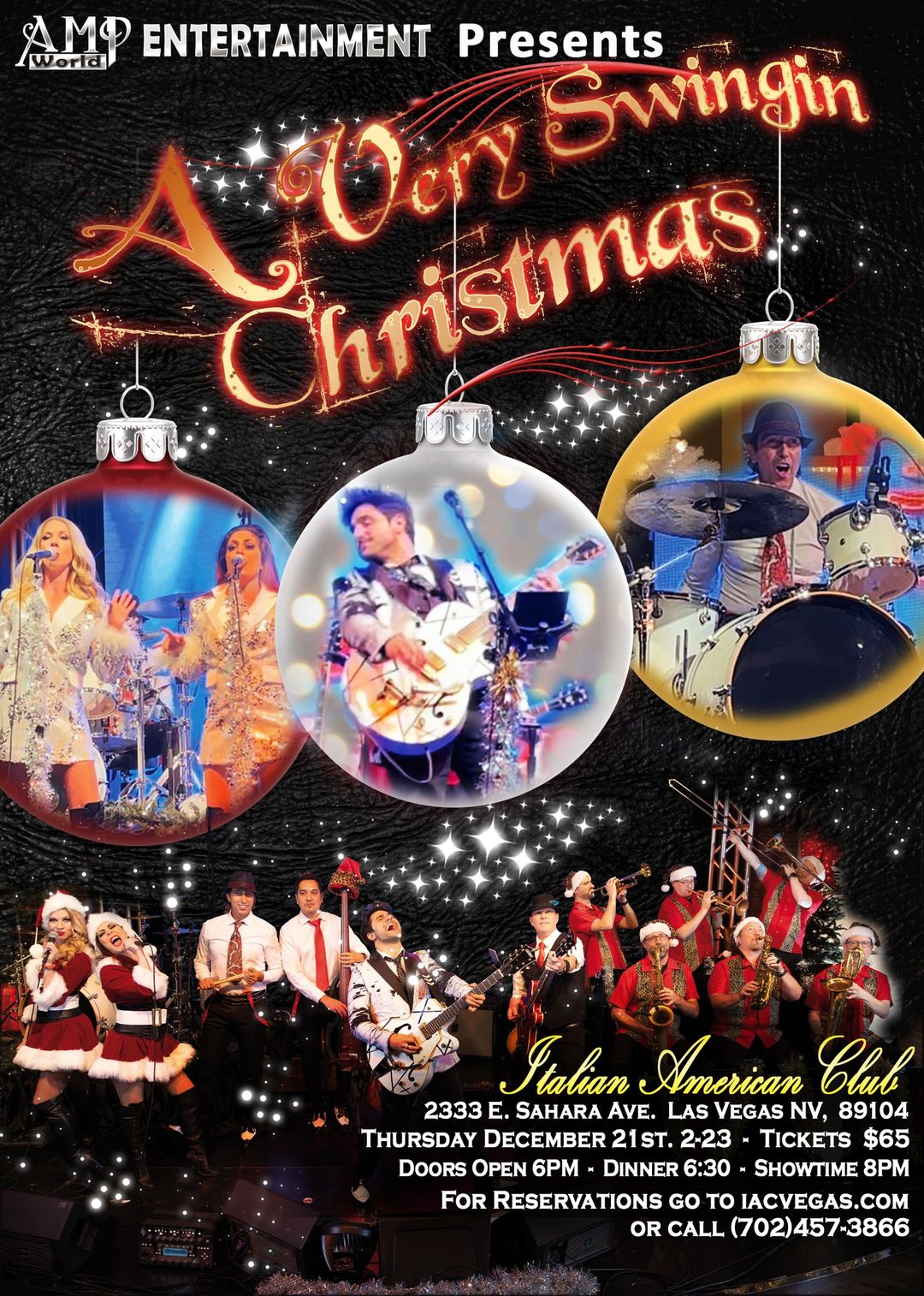 Last but not least, Vincent John of The Bronx Wanderers reteams with drummer Alex Papa (PIANO MAN, MJ The Evolution) for another edition of their annual A VERY SWINGIN' CHRISTMAS. The longtime buddies will present their usual jammin' gems with buddy banter, hard guitar licks, classic Vegas vibes, and lots of sexy guests. The show will take place at 8 pm on Thursday, December 21st at 8 pm. Tickets are $65 and include a buffet dinner at 6:30 pm. Doors open at six. Make reservations by clicking here or phoning 702.457.3866. Italian American Club is located at 2333 E. Sahara Avenue.Holiday Productions Promise a Very Swingin' Christmas