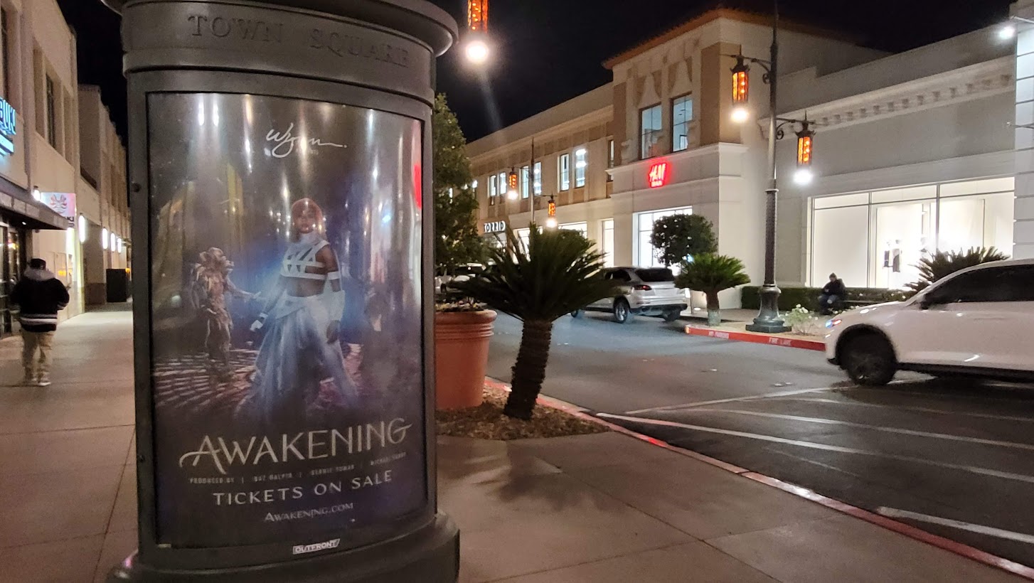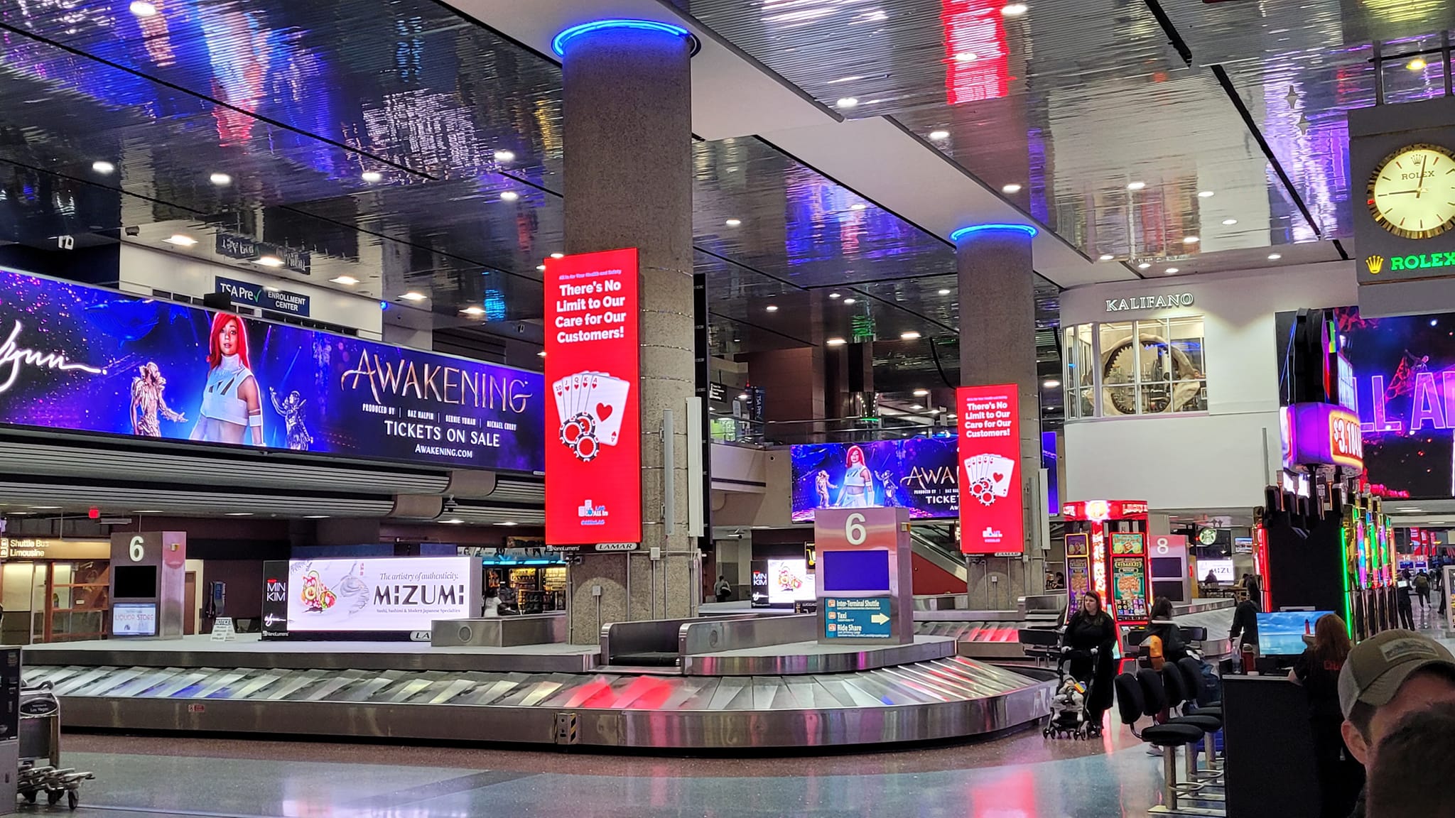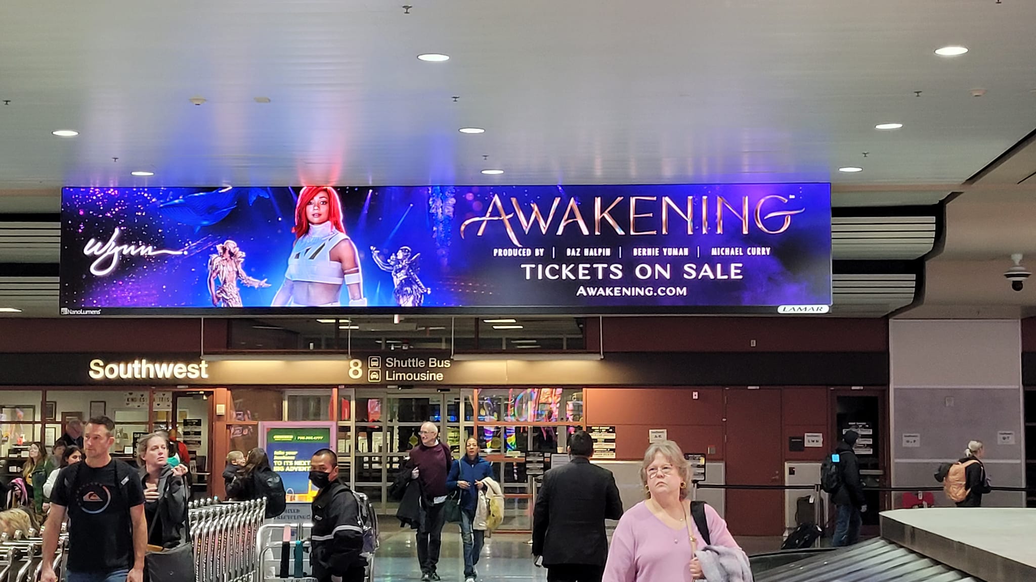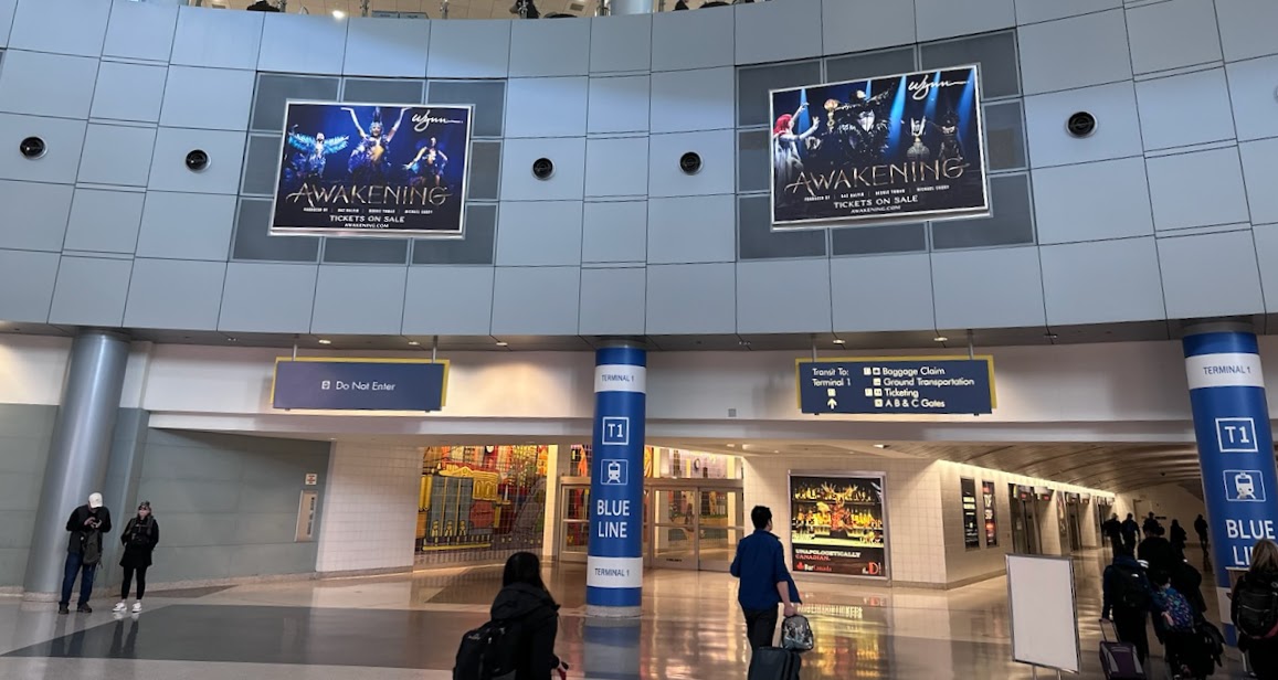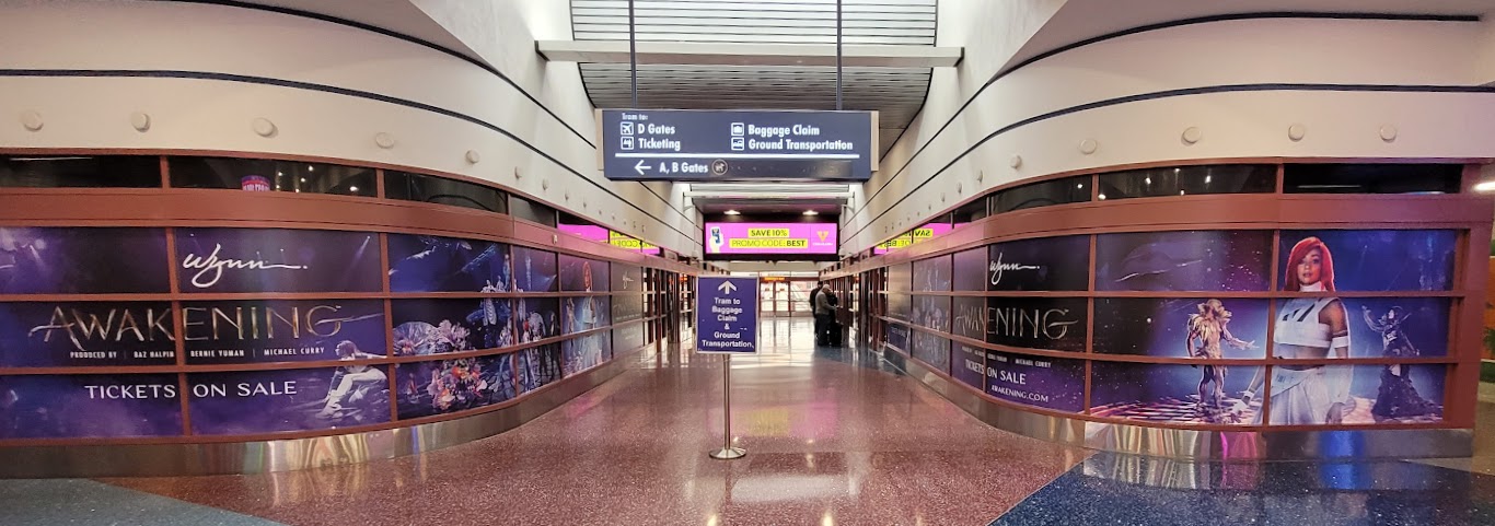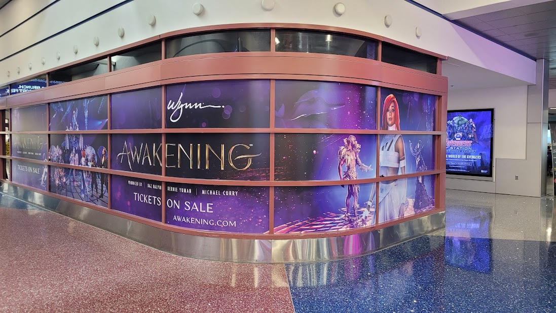 The promotional campaign is on a scale I've never seen before. Advertisements blanket the city on billboards, video walls, taxi cabs, bus stop posters, and even across the massive Allegiant Stadium LED screen. The airport has been wallpapered with wraps and banners.