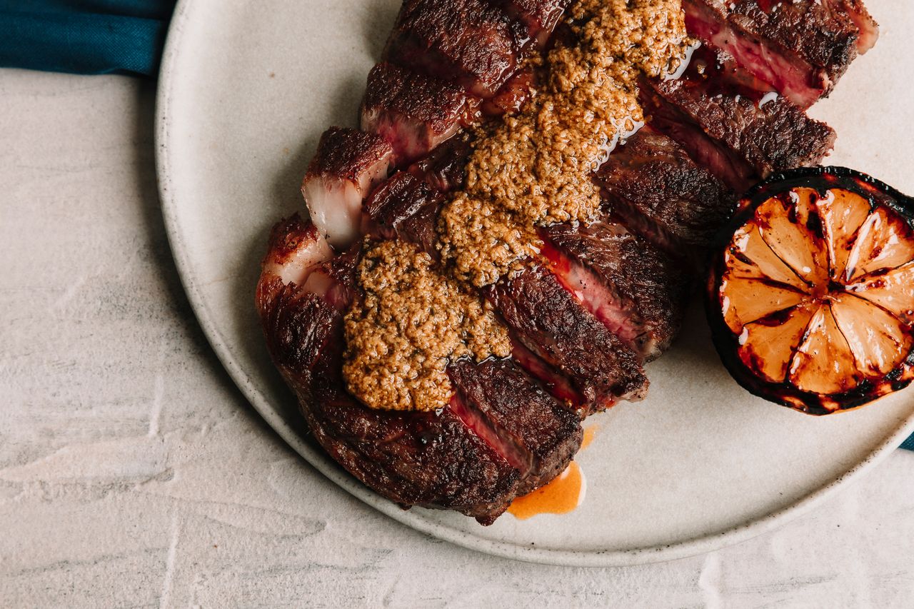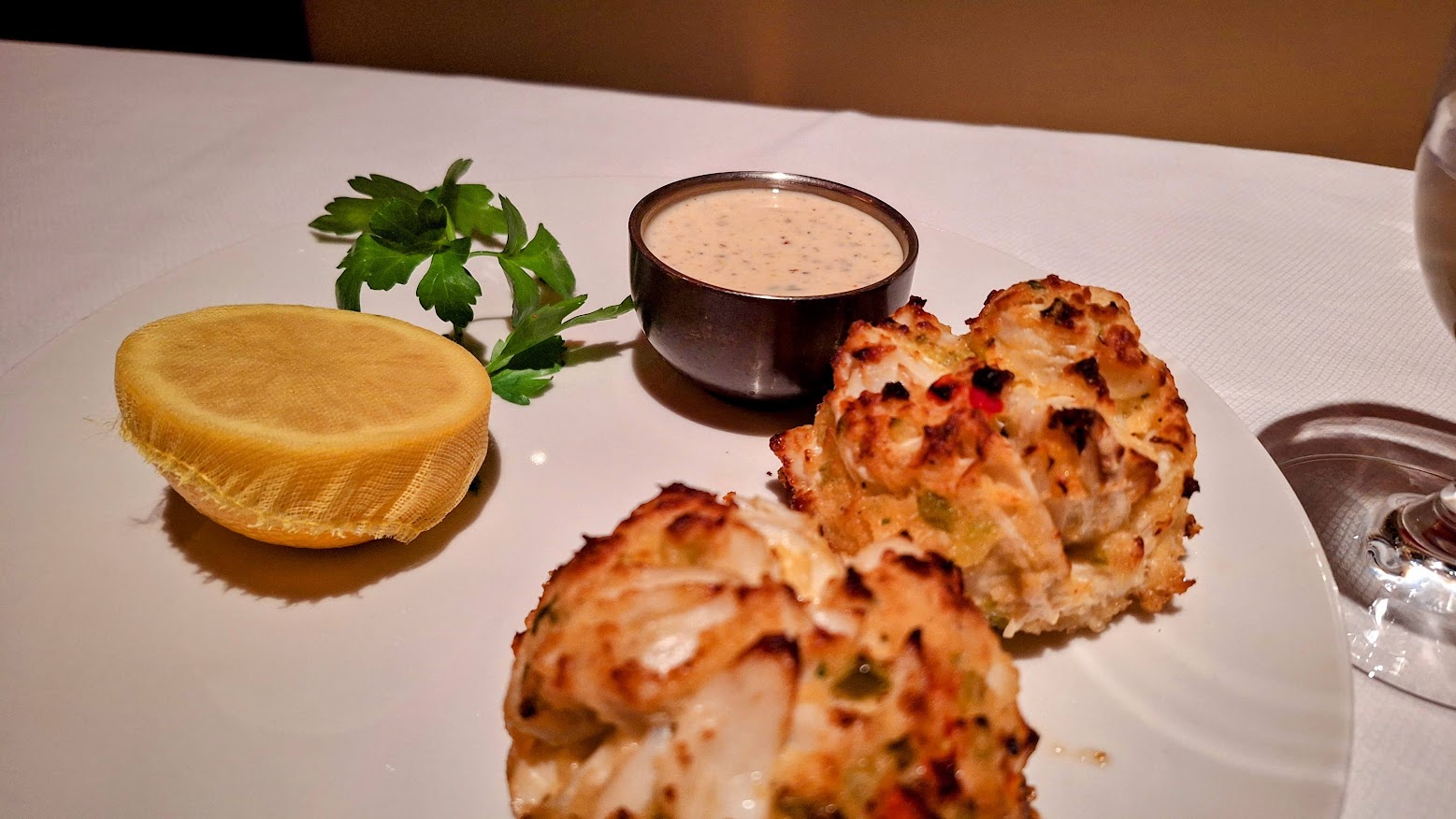 Speaking of meaty, a pair of Signature Lump CRAB CAKES ($35) arrived with cajun remoulade and more lemon. Generous in portion size and with barely any filler, this appetizer would also make a wonderful light meal. But you can also select from favorites like Shrimp Cocktail ($23), Hawaiian Bigeye Tuna Tartare ($24), Oysters with sherry mignonette and horseradish ($23), or Piedmontese Beef Tartare with cured egg yolk, scallions, chives, and a grilled baguette ($24).