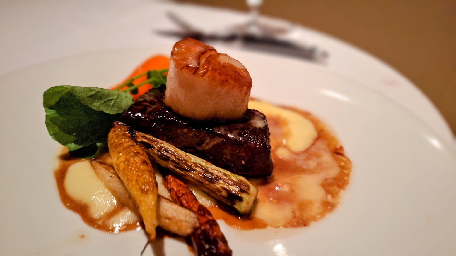 Our special was served with pureed potato and vegetables. Steaks are generally served a la carte and can be paired with any number of generously-portioned sides. Choose from seasonal forest mushrooms, artichoke romana, grilled asparagus, steamed broccoli, and a variety of potatoes. Prices range from $12 to $15. You can dress up your plate with add-ons like TWIN LOBSTER TAILS ($39), PAN-SEARED SCALLOPS ($22), Oscar-Style topping, or Truffle Butter.
