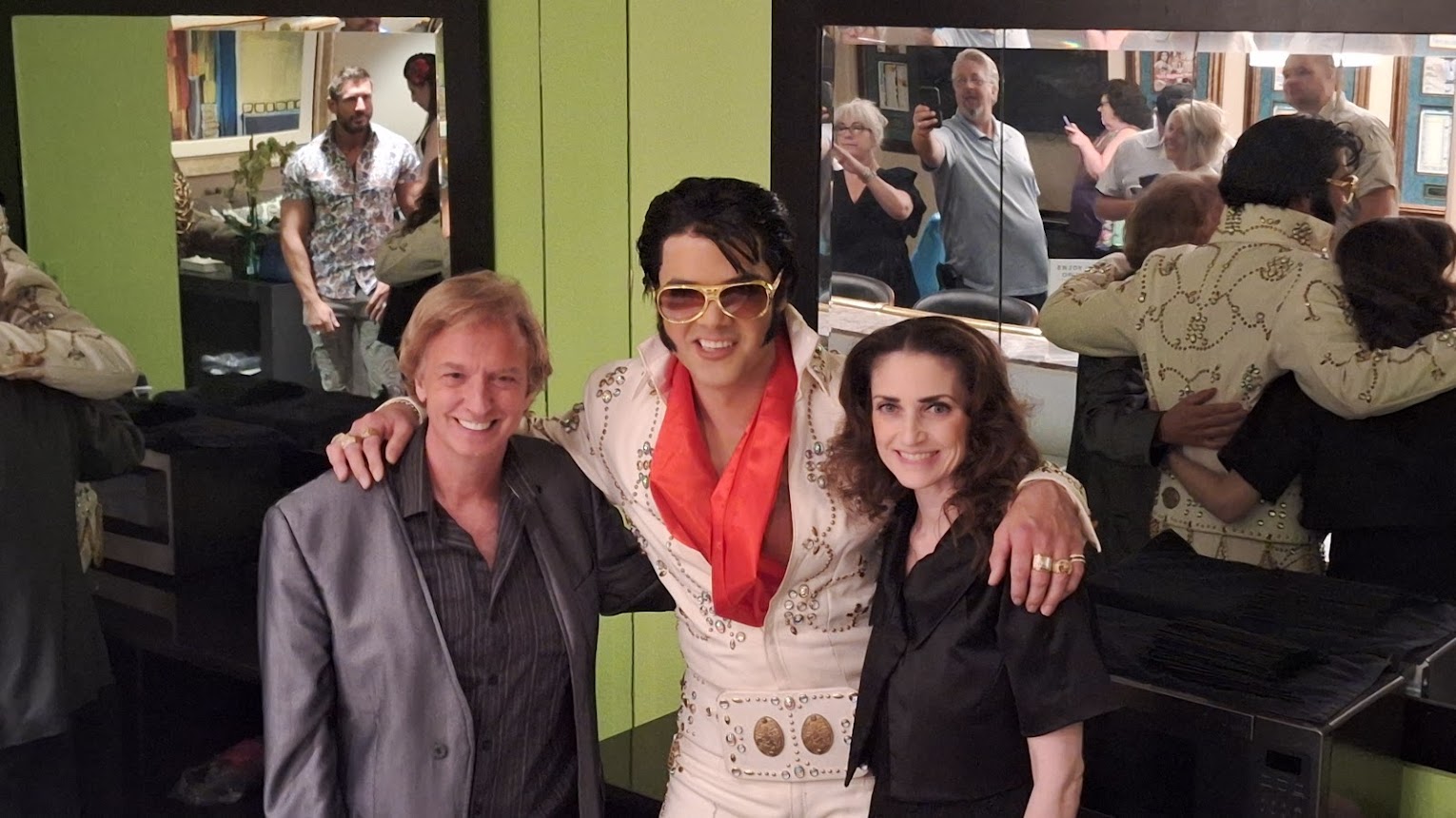Ned Mills and Sally Olson of CARPENTERS LEGACY flank Daniel Durson in the Elvis green room